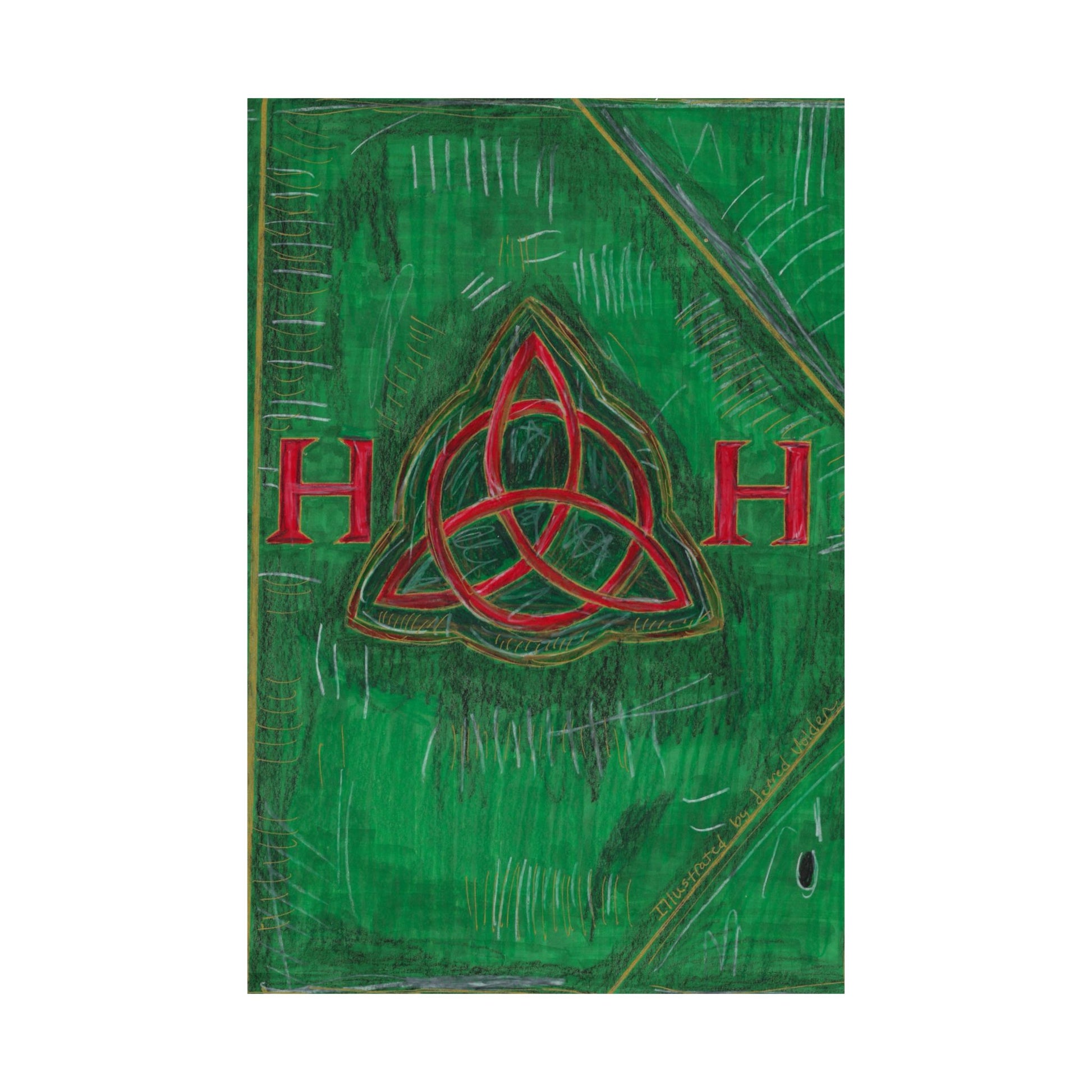 Designed by long time friend and House of Halliwell Family member Jerred Volden. Jerred has been recreating Book of Shadow pages for years by hand painting and writing with ink on parchment. This will be the first of many designs of his that we will be releasing as posters, shirts and more.